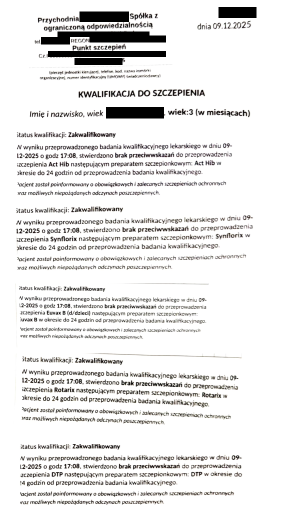Lekarz odpowiedział, że tego nie wie i zakwalifikował dziewczynkę do szczepienia… stwierdzając brak przeciwwskazań w postaci uczulenia na składniki szczepionki.🤡