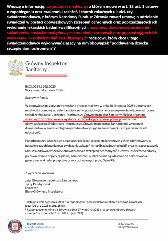 Czasem zdarza się tak, że rodzice chcą iść z dzieckiem na badanie kwalifikacyjne, ale przychodnia strzela focha i nie chce wyznaczyć terminu badania, bo się boi, że rodzice będą zadawać za dużo niewygodnych pytań, a w dodatku wszystko będą nagrywać. Co wtedy? Sanepid nie wie, bo „nie jest organem właściwym do dokonywania wykładni”…