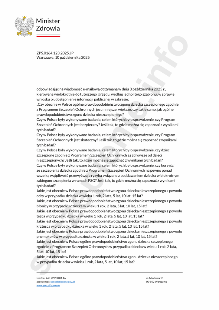 Skąd wiadomo, czy „szczepienia ochronne” chronią zdrowie, skoro nikt nie wie, czy obecnie w Polsce zachorowalność np. na choroby neurologiczne, psychiczne, nowotworowe czy immunologiczne nie jest wyższa w populacji dzieci szczepionych, niż w populacji dzieci nieszczepionych?