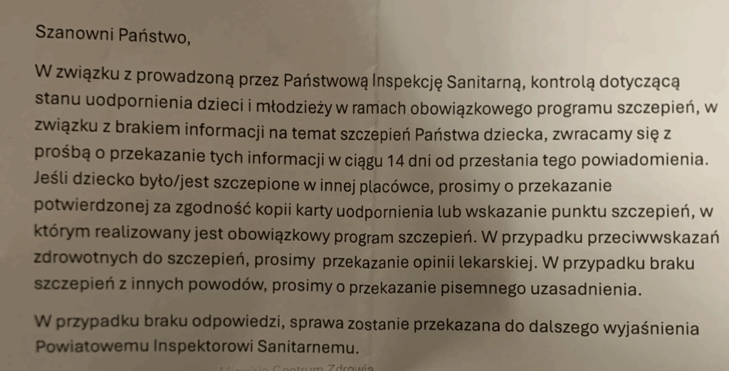 Jeśli wypisaliście dziecko z przychodni, ale mimo to otrzymaliście od nich takie pismo: